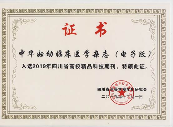 《中华妇幼临床医学杂志(电子版)》被评选为“2019年四川省高校精品科技期刊”
